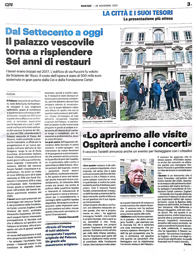 Arteventi news - intervista gennaio 2023 Architetto Alessandro Suppressa e i lavori a Palazzo dei Vescovi Pistoia |