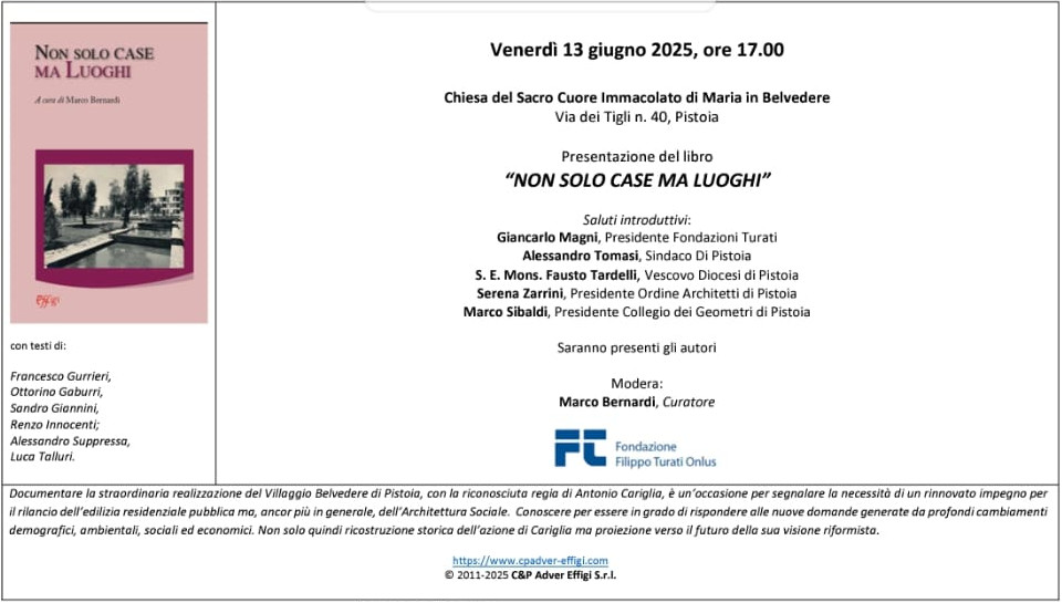| Presentazione del libro "Non solo Case ma Luoghi" Venerdì 13 Giugno 2025 ore 17.00 Chiesa del Sacro Cuore Immacolato di Maria in Belvedere clicca qui per leggere l'articolo |